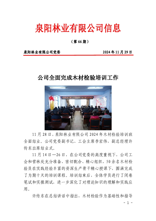 泉陽林業(yè)有限公司信息2024年第66期